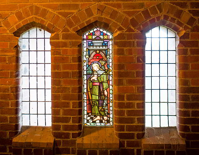 The windows on the western wall were placed there in the 1930s and depict St John, St Luke, Mary and the child Jesus, Dorcas, and Mary Magdalene. The Mary Magdalene window has been accepted as being largely (if not wholly) the work of Christian Waller.
